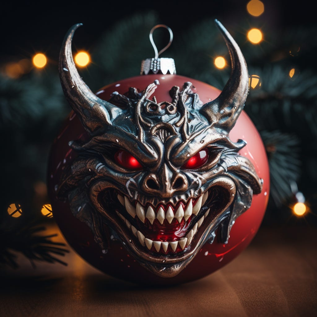 The hulk shambled forward, the room rattling with his heavy footfalls. It stopped before the queen, a figure she knew well. It was the Night of Gifting and Krampus, able servant and fellow denizen of the Nether, never disappointed. The fortress was a welcome home to his bounty. Each year, a feast for the senses. The denizens of the Court came from far and wide to see the newest trophy, to delight in its agony, to wager on what kind of soul would become the next permanent fixture in Mistress Frost’s dungeons. An eternity of terror and pain.